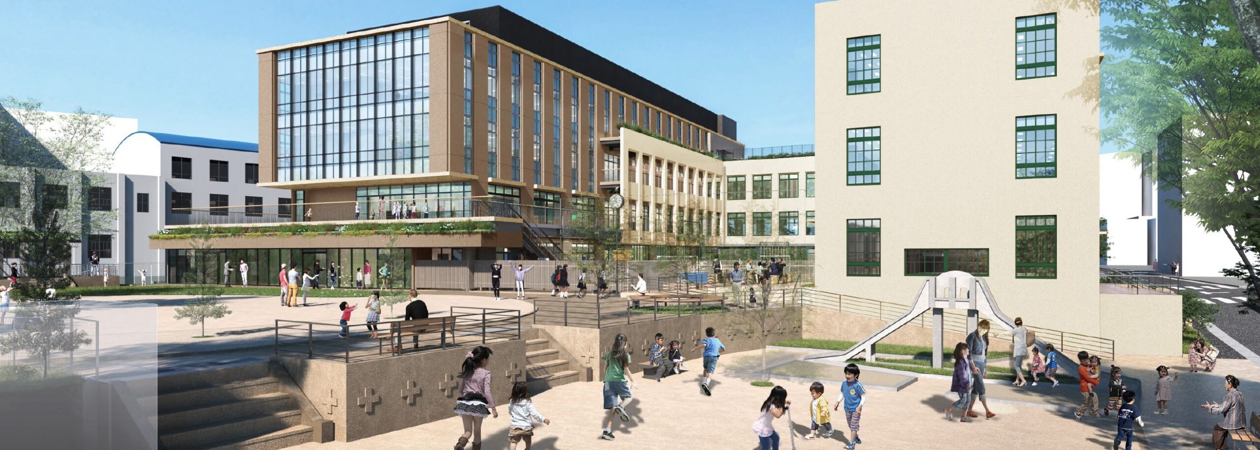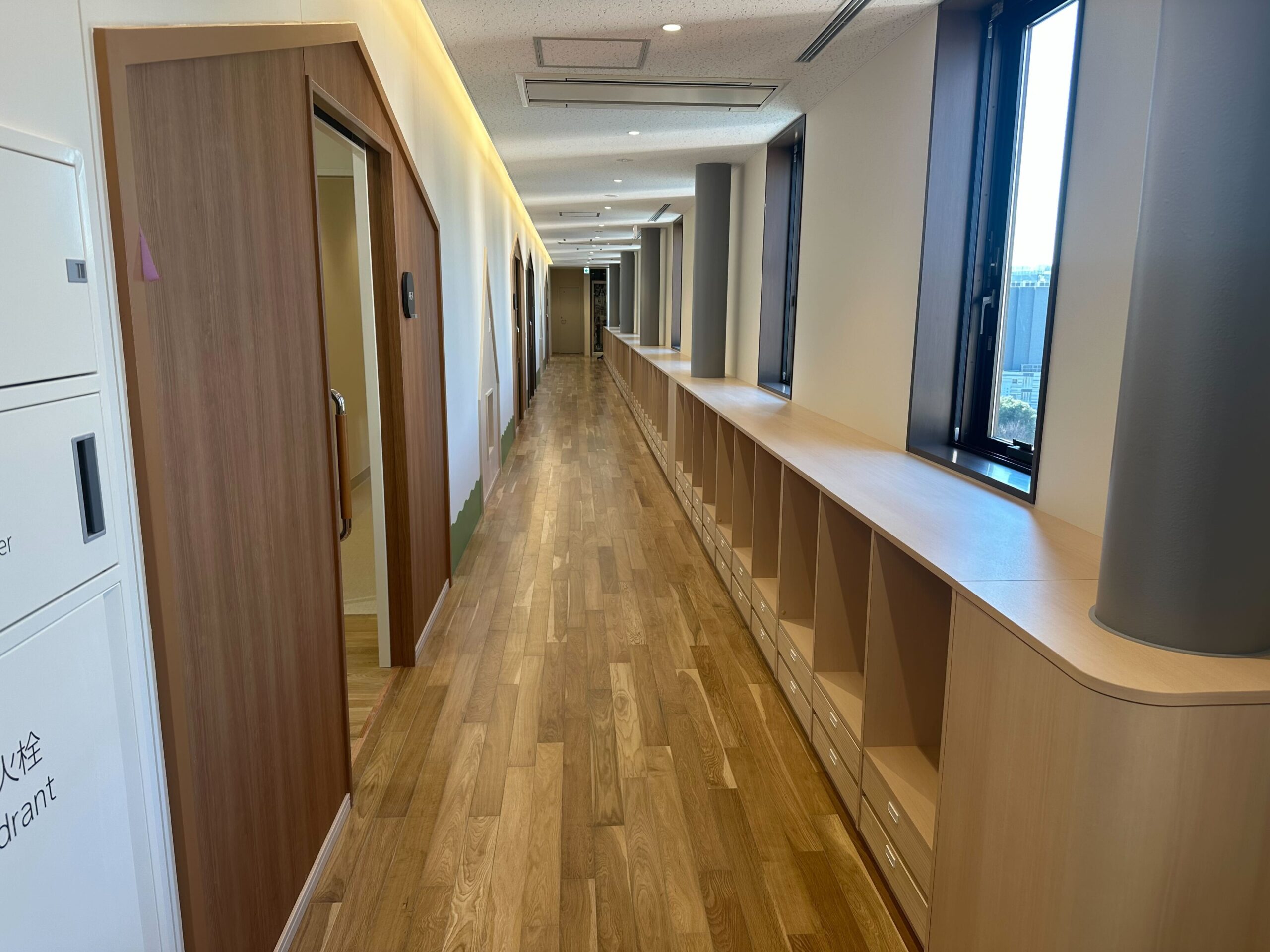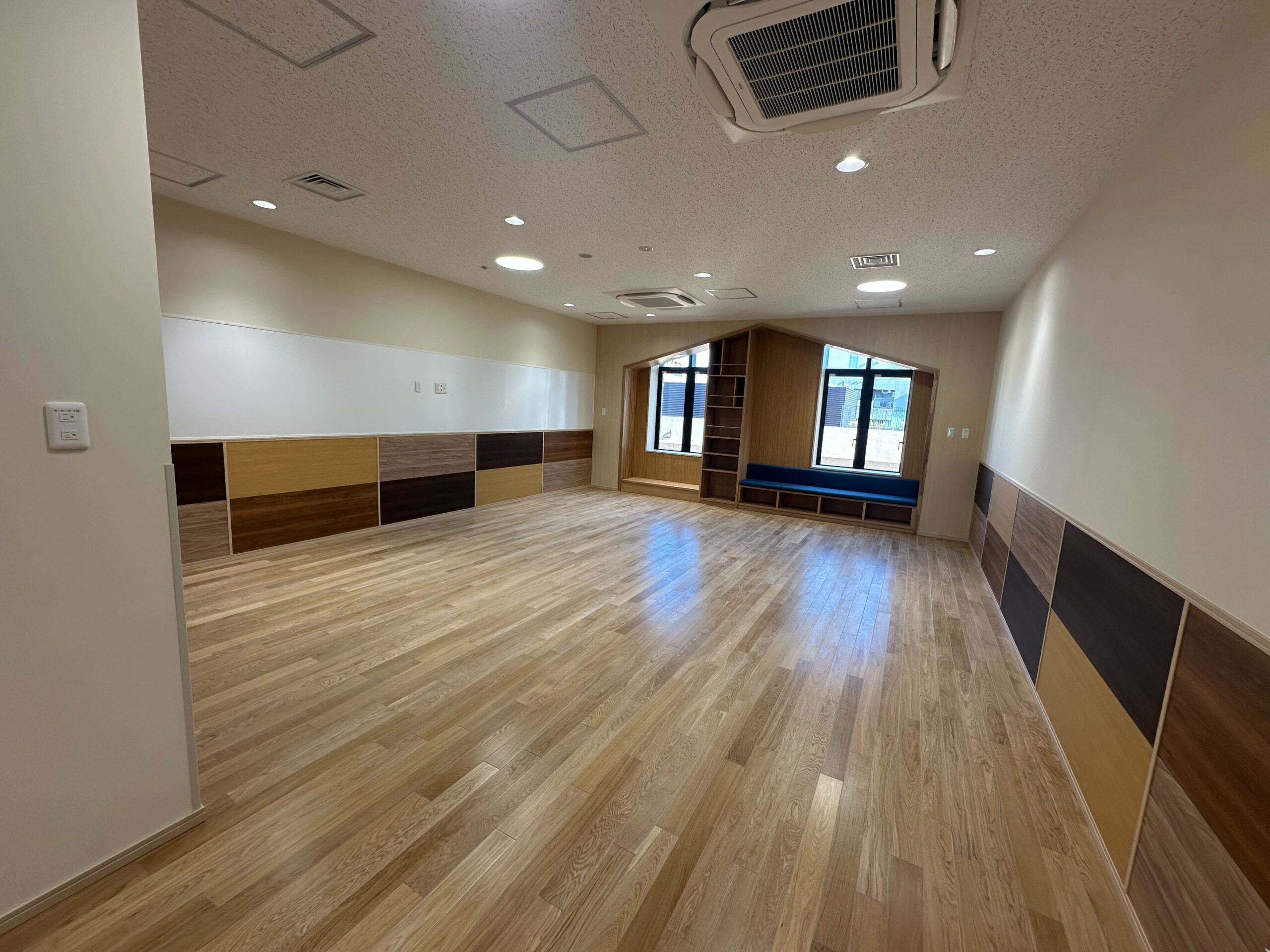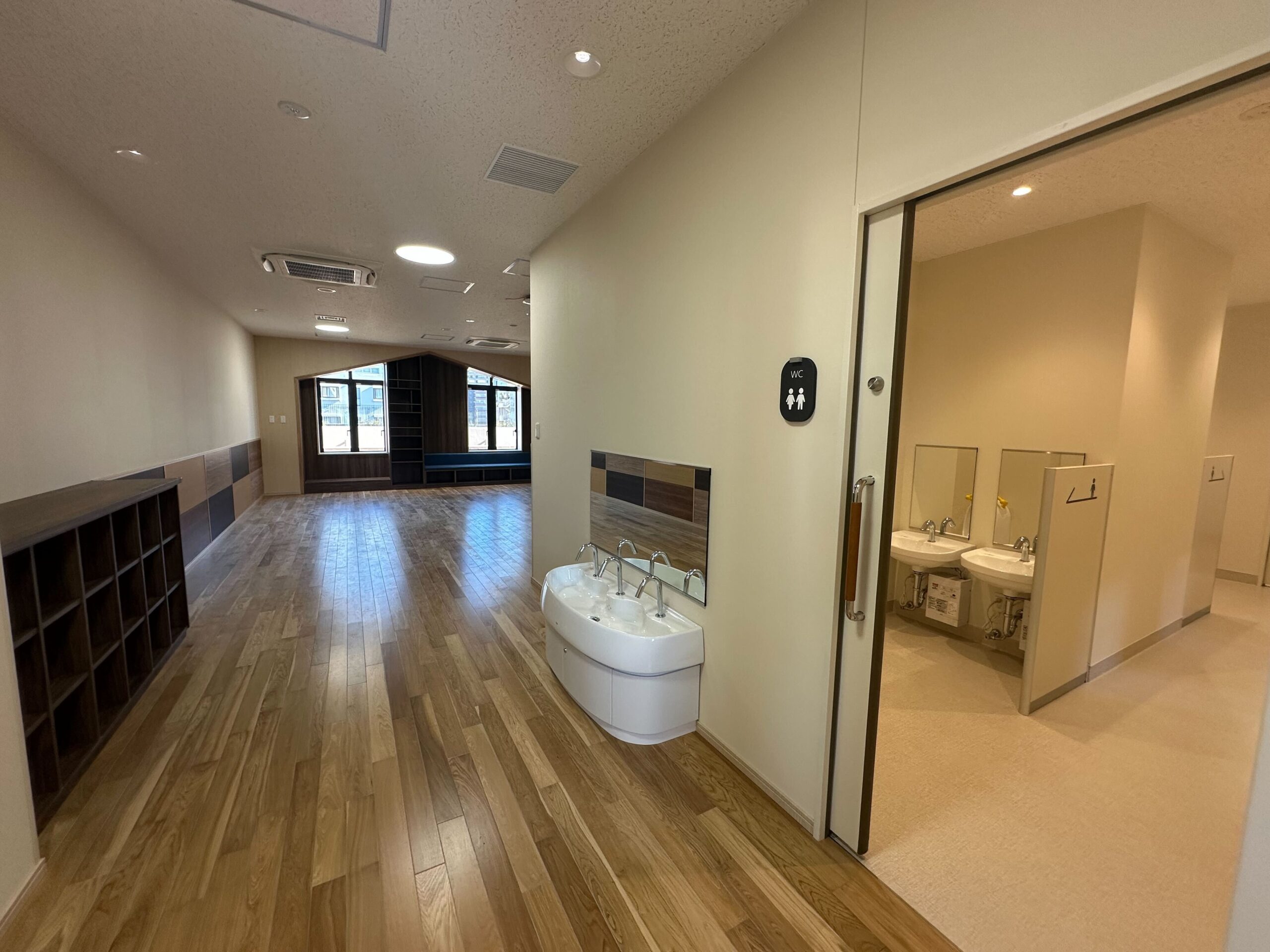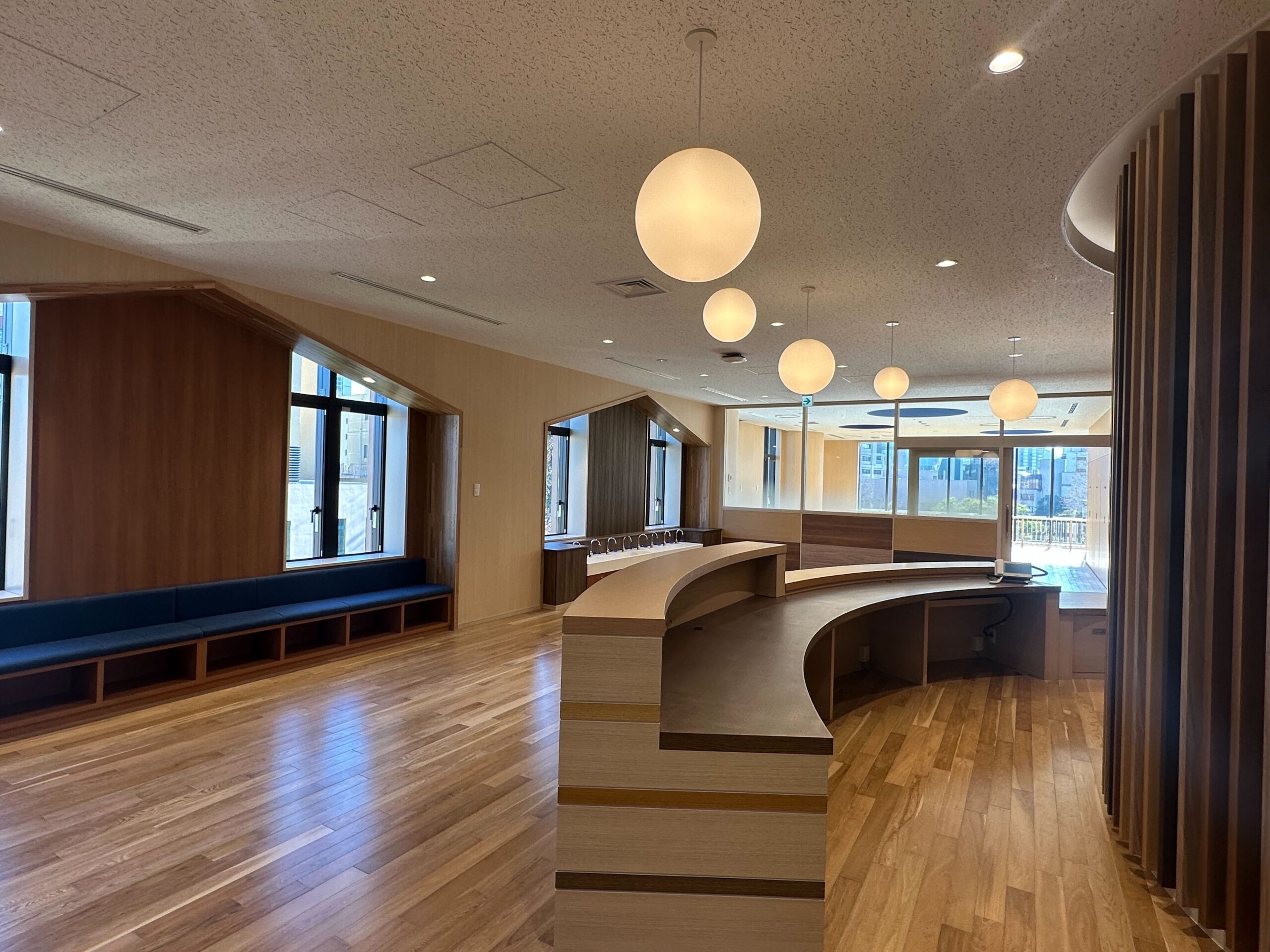 当園は元町ウェルネスパークの4階に位置します。300平米を超える広々としたスペースに、多目的室、園庭を完備しております。元町ウェルネスパークは、東京都文京区とともに、人々が永く健やかに暮らすための拠点として、公共と民間が協働で健康をテーマとした様々な事業を展開する施設です。多様な保育施設による⼦育て⽀援、交流スペースづくりや、新しい医療機器/技術の開発、災害時には順天堂医院と連携した医療救護所の設置などを行う予定です。